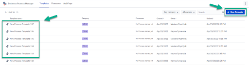 Choose an existed one or create your own Template. Click the “+New Template” button to create a new template. You can create as many templates as you need in your workflow. And all templates are displayed on the table like it’s shown on the screen below:
