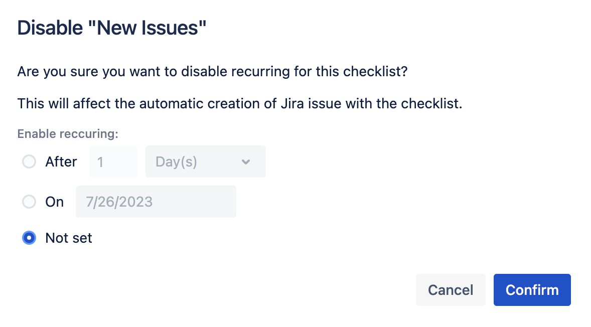 Also in case if you want to run now issue creation time by time without recurring, you can set recurring settings but disable them by toggle.