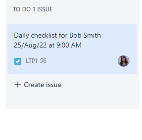 After all these settings, the App will automatically create an issue with a checklist “Daily checklist for Bob Smith 25/Aug/22 at 9:00 AM”. Once the issue with a checklist starts, the App will automatically put an {assignee}, ({start date} and {start time}) in the issue summary. The Jira issue example you can see below.