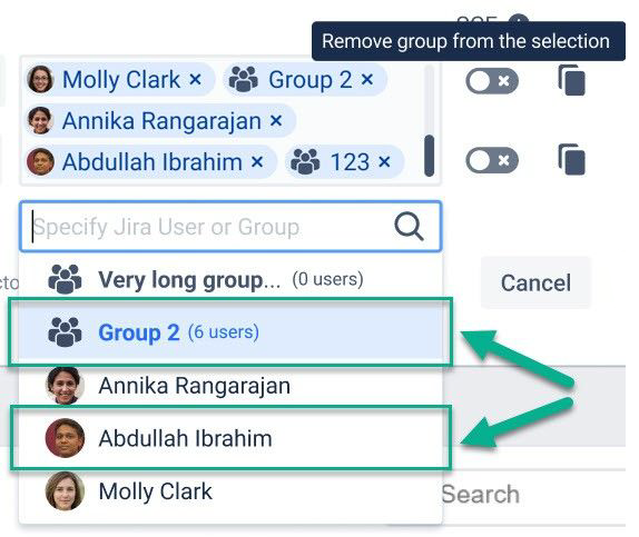 If you want to notify users about exceeded issues in comments, you can choose an option to notify one user (individual) or a group of users in comments about exceeded issues.