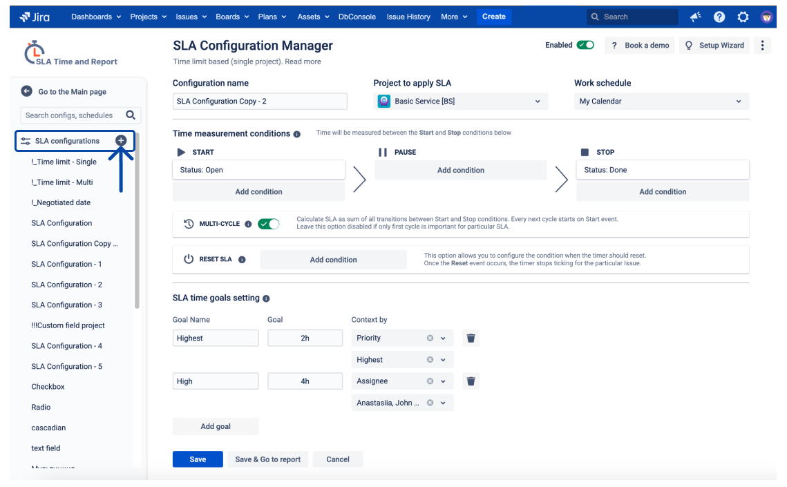 Next, in the SLA goal type, select a Time limit based on Multiple project: