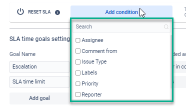 This option allows you to configure conditions when the SLA timer resets every time a certain condition is met and starts running again only when the Issue is on the Start condition.