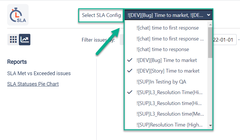 For each type of chart view, you can select SLA configs you want to view statistic data about.