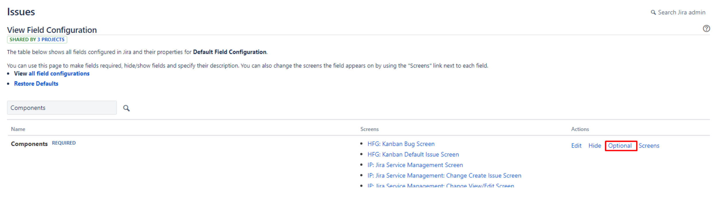 Find the type of Field Configuration that is used in the Project where you want to create issues after form submission. In our case, it is Default Field Configuration. Then click on the Configure button.