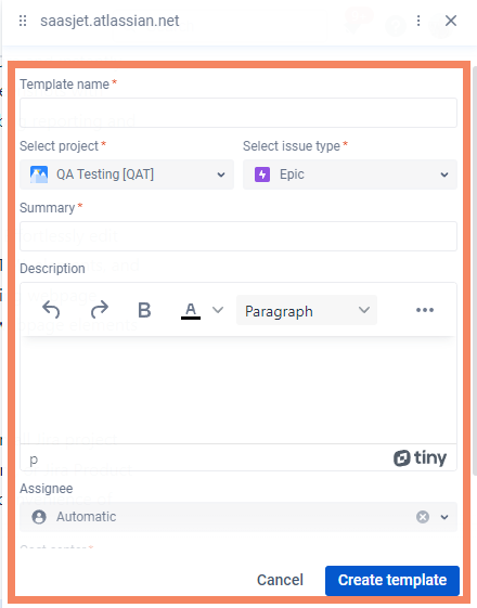 Next, fill out the template creation form. All fields and even images you add to the description will be saved.