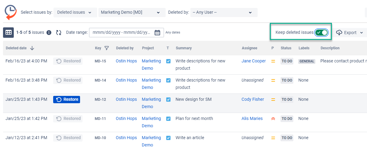 Track and keep deleted Jira issues to be sure no record is lost forever: