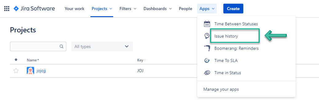 5. Open your Jira account and choose "Issue History" from the drop-down list.
