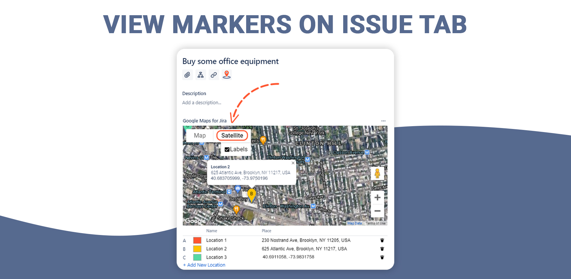 View markers with address and geocoordinates on Jira`s mobile apps.