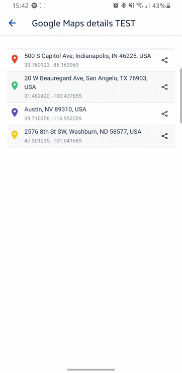 3. Select one of the listed markers with address or geo coordinates and click the share button.