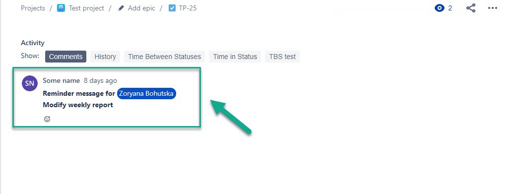 When the time comes (according to settings), the comments with the reminder will be added to work items where the Boomerang is configured.