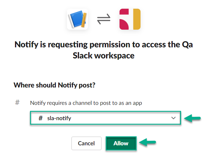 7. Choose a Slack channel where the notifications will be posted, and click “Allow” button..