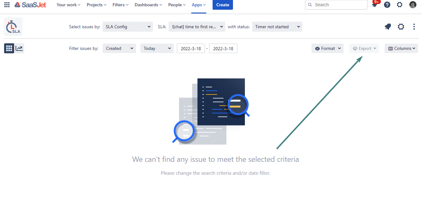 When all your data is displayed according to the selected SLA configuration data, the Export option will be available.