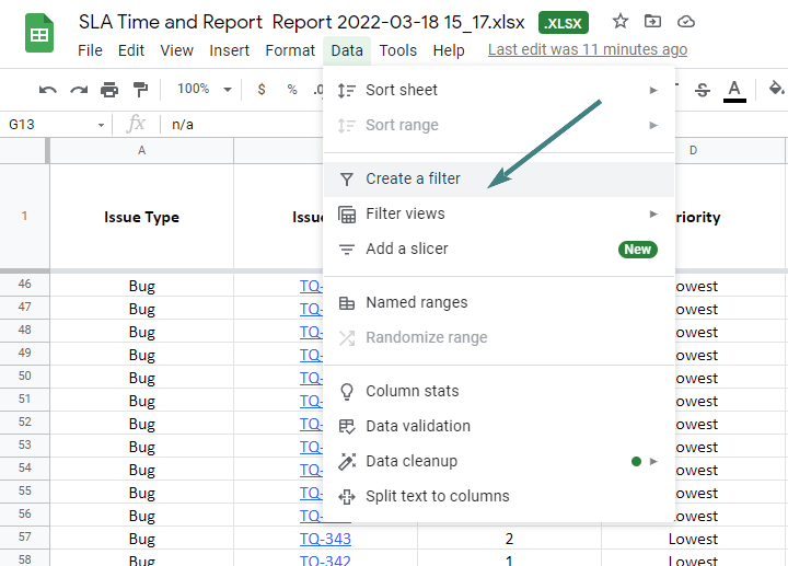 Look on the screen below to see how this option is displayed in the Google Spreadsheets.