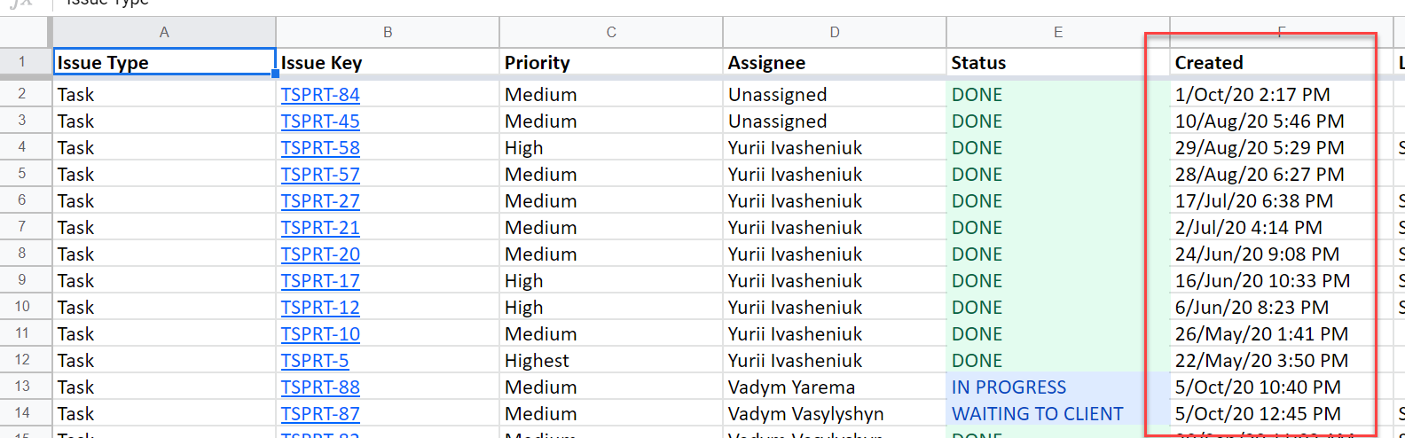 To see time with “Created” and “Updated” date fields, you need to point a mouse cursor on a “Date” field. You’ll get time along with “created” and “updated” fields in a file after exporting.