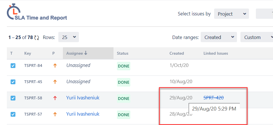 If you don't see the SLA time, please check the parameters you have set before selecting issues.