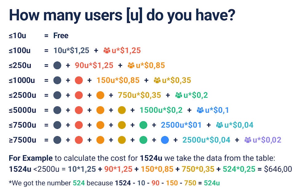 Here’s a picture that displays how you can calculate the accurate price for a particular number of users.