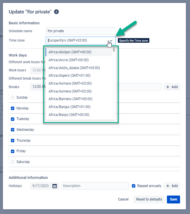 Time Zones are used to control the execution of the SLA according to the location where the team is working.