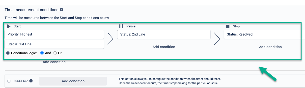 2. Choose a Priority and a necessary Status for a “Start” condition.