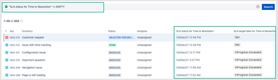 1. If data is synchronized successfully, and you can see the SLA Status and Target date in the issue layout, start from the 2nd item.