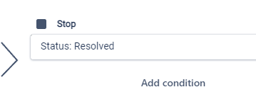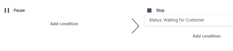 Skip the Pause and set the Stop Condition = Status = Resolved.