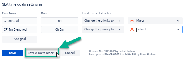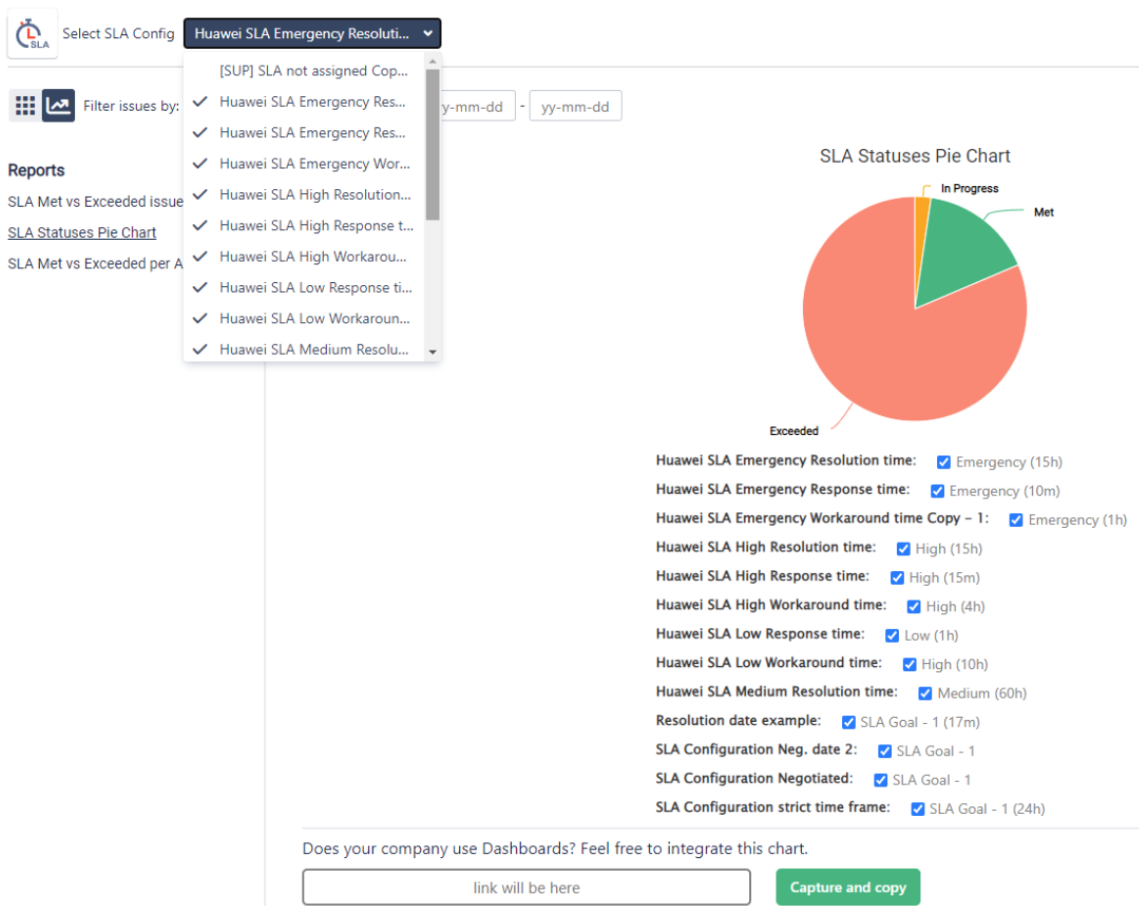 Select issues by SLA Config and select SLA configurations with the time goal inside (as default, the time goal will be selected automatically).
