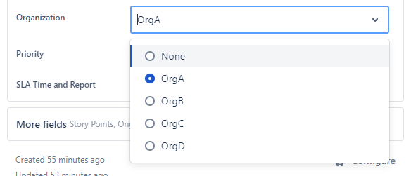 So, if you need to run the SLA for a specific type of customer, we have to set up an SLA for a particular organization with the Custom field “Organization” and choose Priority (Critical, Major, Medium, Low).