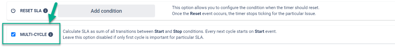 Set the Multi-cylce option if you need to sum up all transitions between Start and Stop conditions.