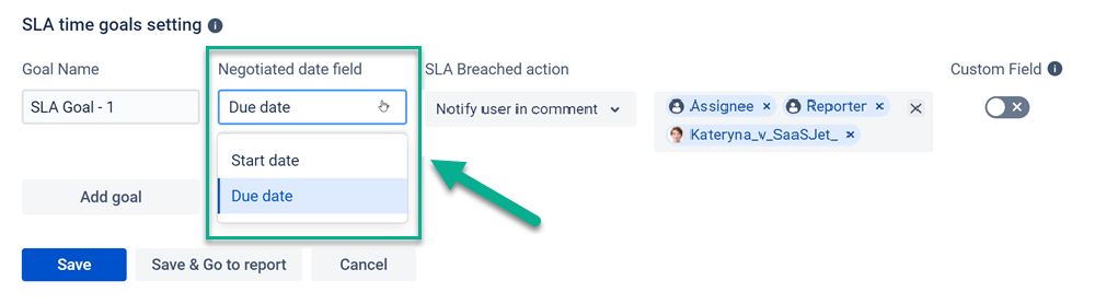 This SLA type allows you to set up SLA goals based on any date or date&time field.