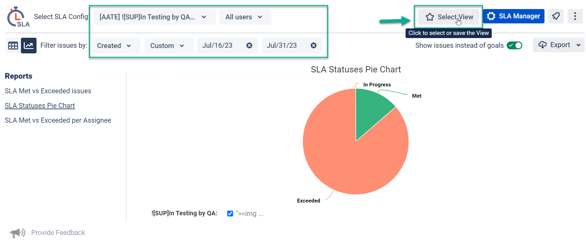 You no longer need to enter the settings of the most popular SLA reports several times – use the Save view function. This can be done both in the Charts and the Grid-Table report.