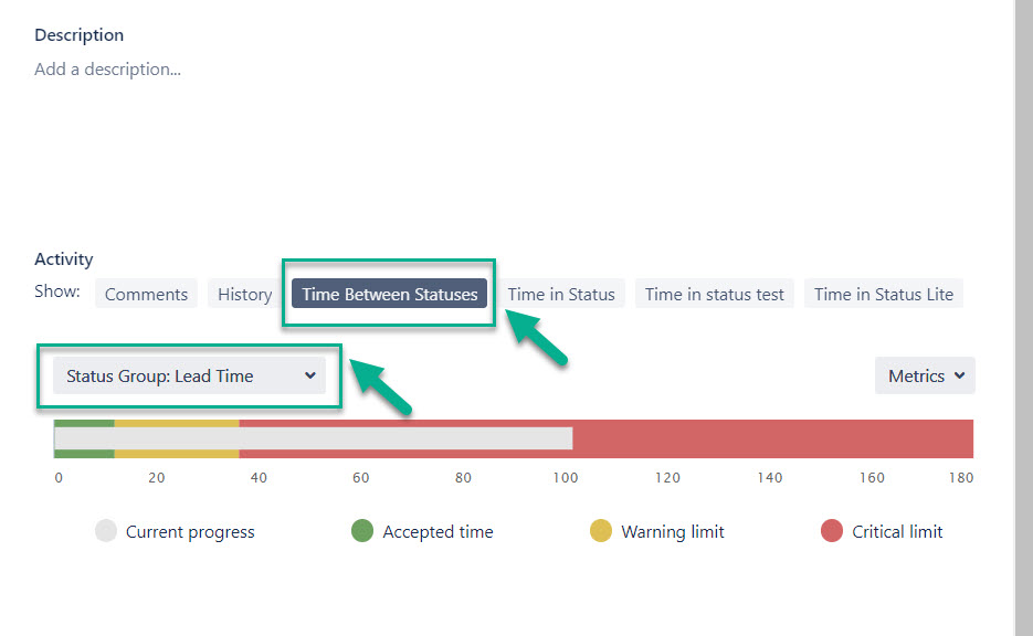 Set start/stop and pause statuses for calculation. For example, for Cycle Time you need to choose In progress status for the start and To Review as stop status for calculation. For Lead Time: To Do - for start and Done - for Stop. Optionally, statuses like Hold or Pending can be selected as pause triggers for the timer.