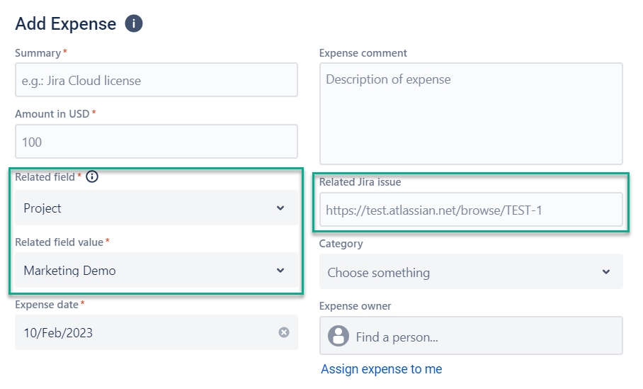 We added the Related field selection to associate every expense to some custom field in your Jira instance.