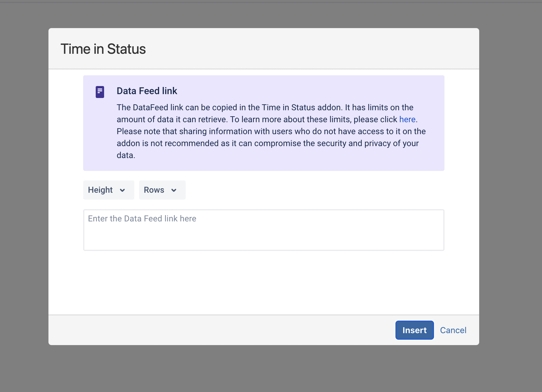 After completing the settings, press the Insert button to get the Time in Status for Confluence.