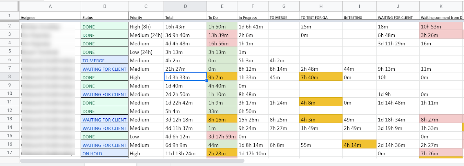 Time in Status reports can help to gather the information and interpret the following data: