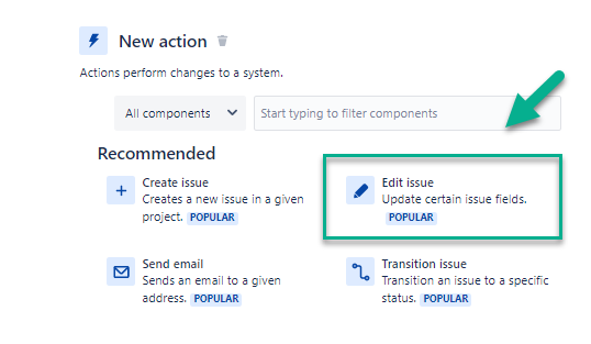 16. Choose โEdit issueโ as a new action to update necessary issue fields.