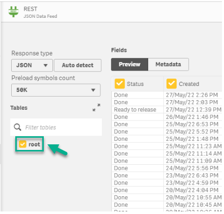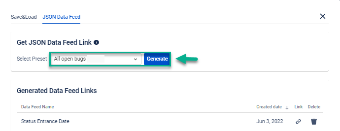 Create the JSON Data Feed link.