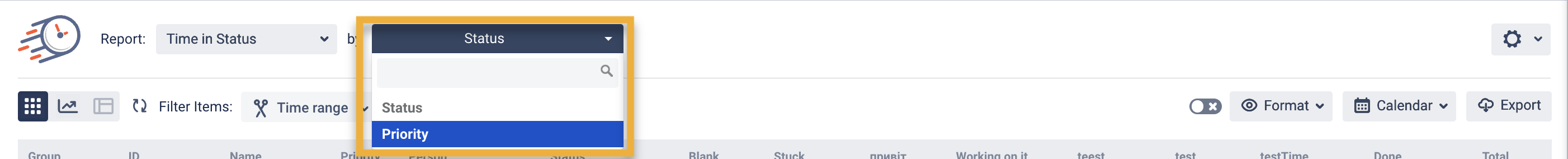 Filter data by Status or Priority.