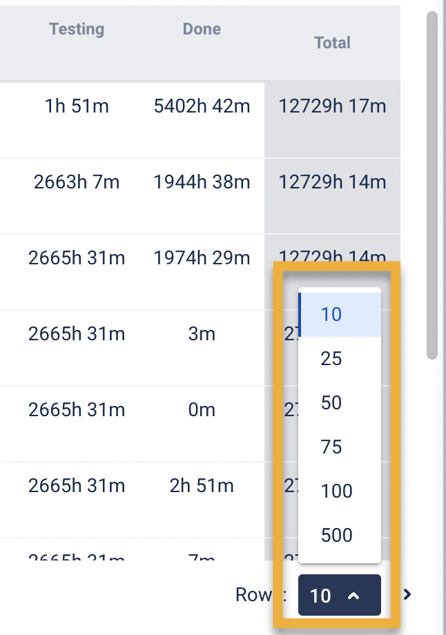 Also you can choose how many rows will be displayed on the grid in the drop-down list.
