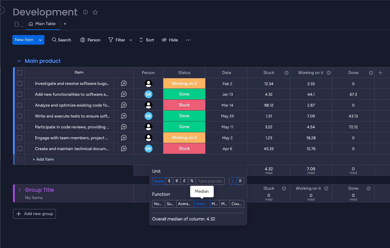 By activating the application on your board, you can easily monitor and calculate the total, average, or median time spent in each status. This functionality helps identify workflow delays, improve team efficiency, and increase overall team performance.