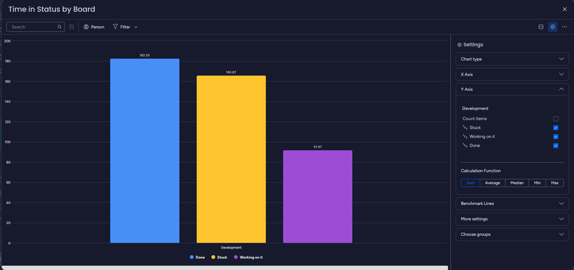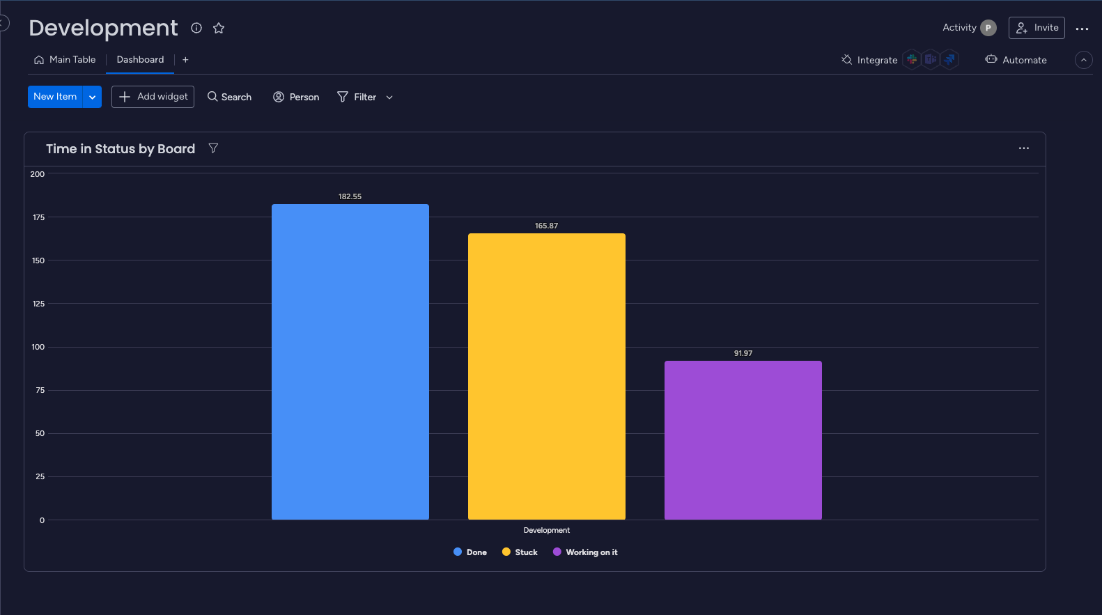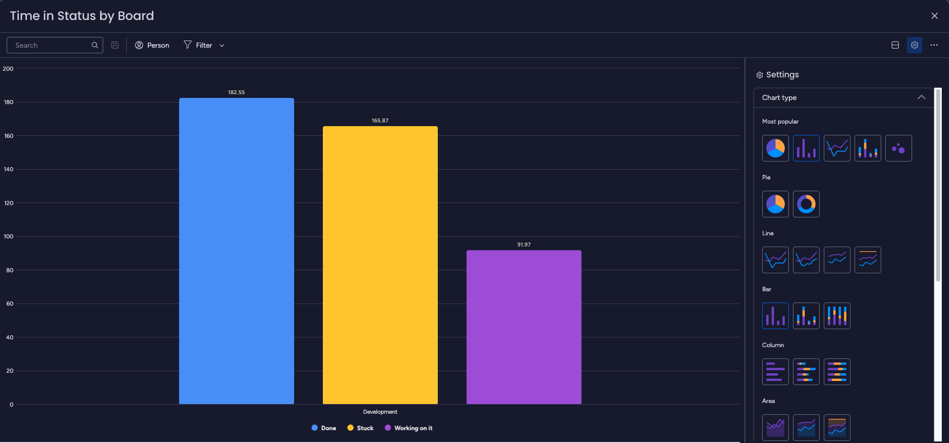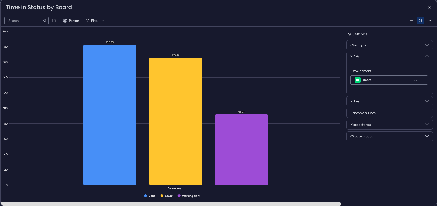 You can identify boards with longer or shorter times in specific statuses, allowing you to analyze workflow efficiency and identify areas for improvement.