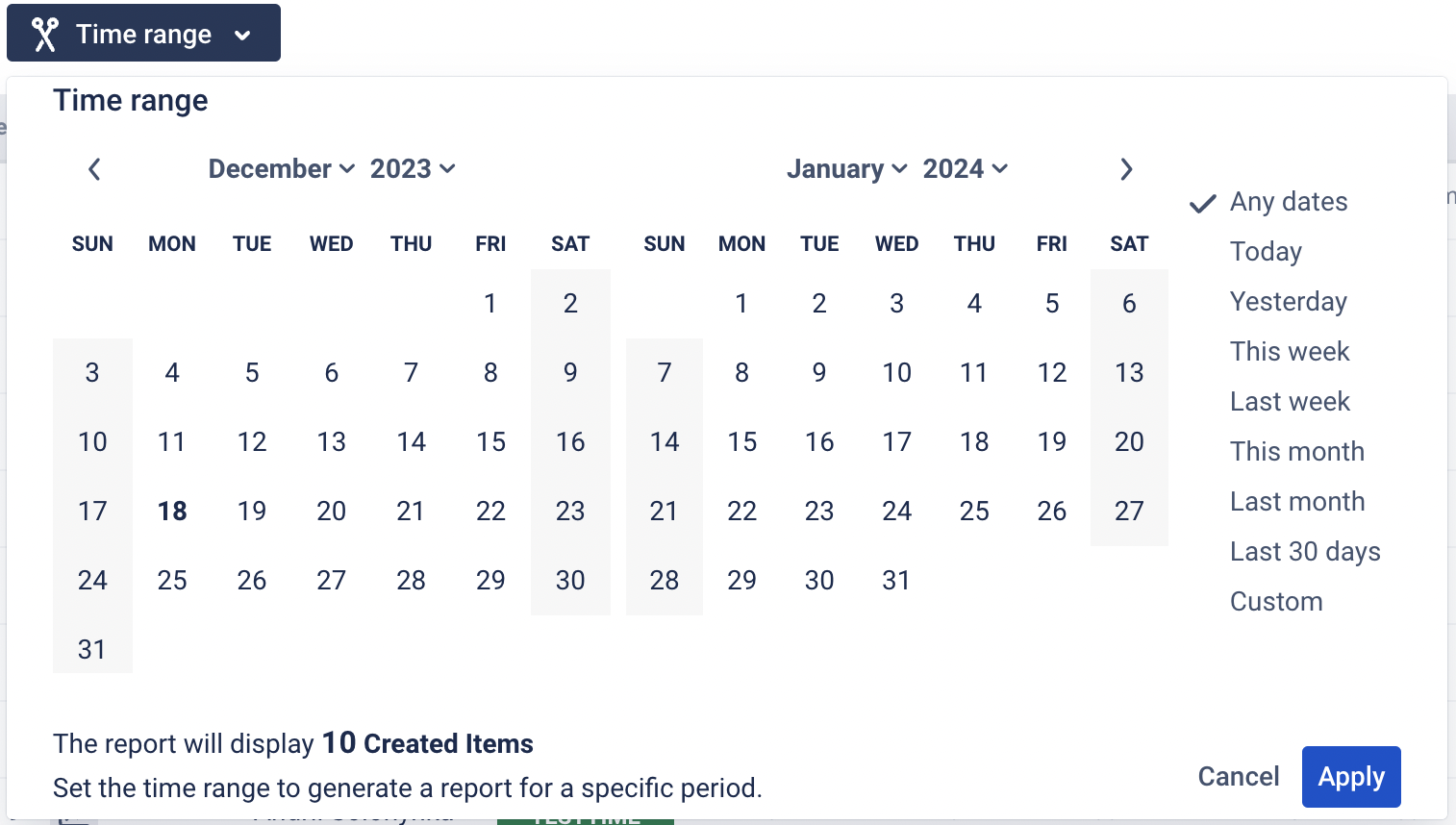 Note! If you haven't set the “Time range”, the sample will calculate for the ‘Any dates ‘ period range.