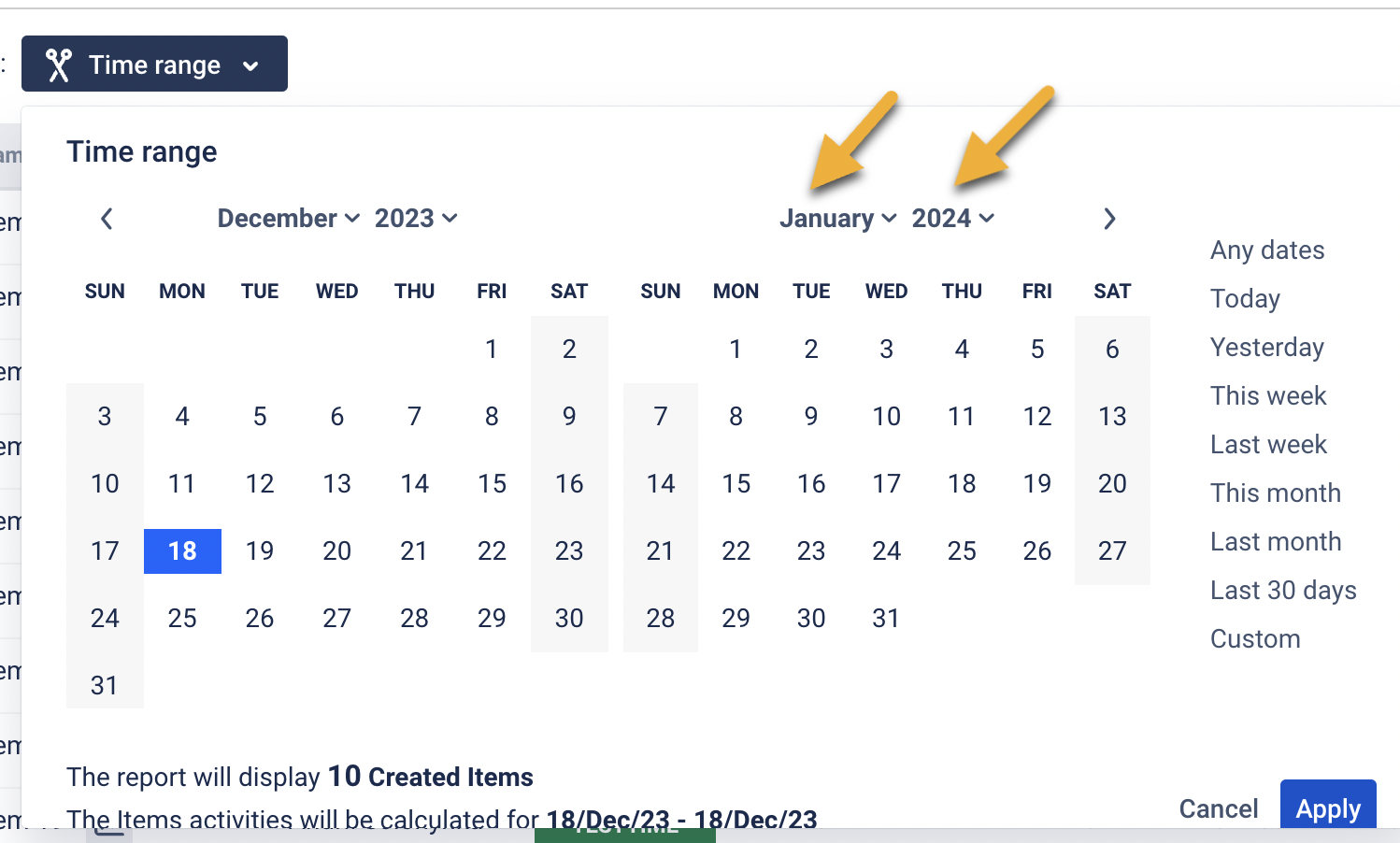 Note! If you need to choose a custom range for a long-time period, please follow the next steps: