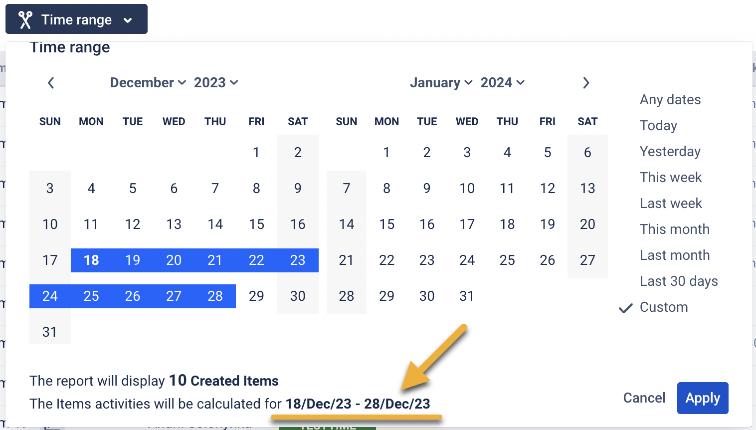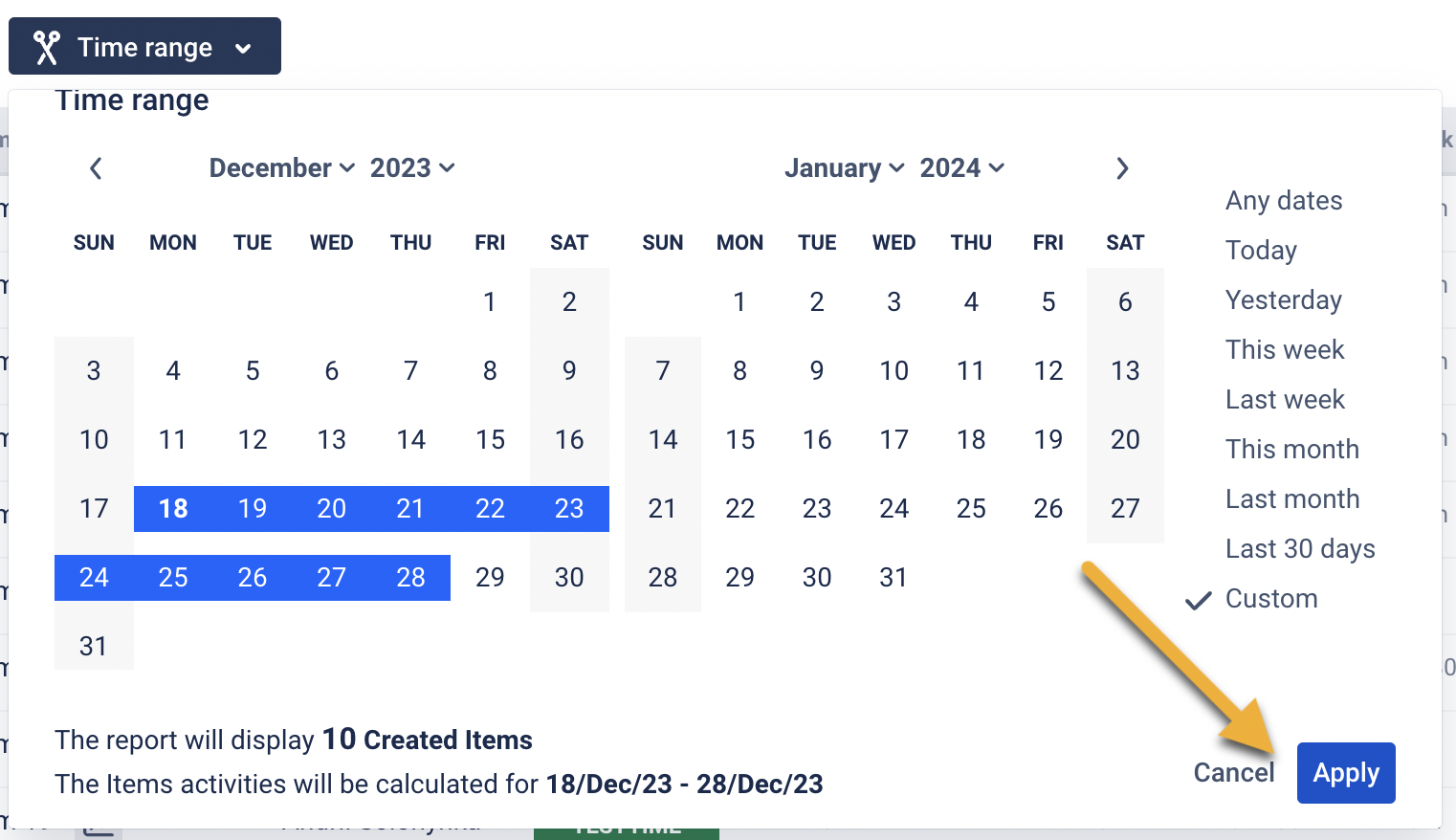 *If you haven't set it, it will calculate the time data for the whole period (option Any date - selected by default).